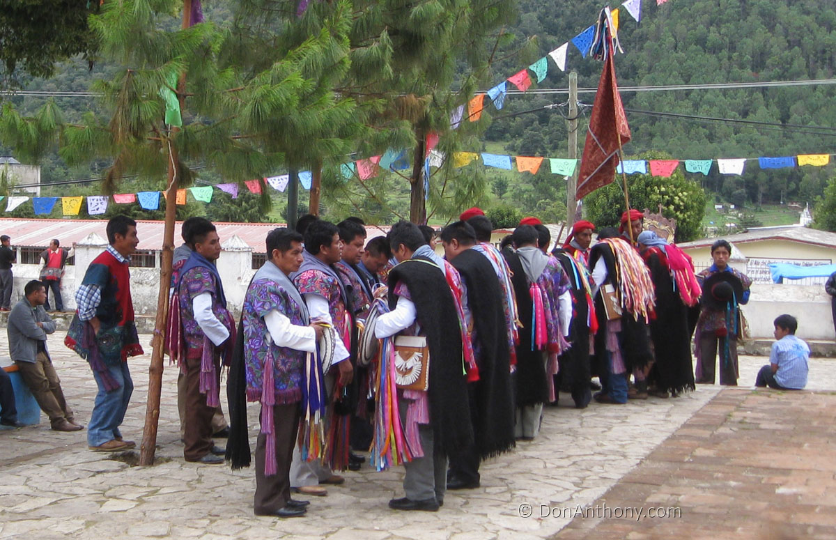 The dress is different here (see the blouses and men's colors). They identify the religious beliefs and ways of the village Zinacantan to others where they visit.