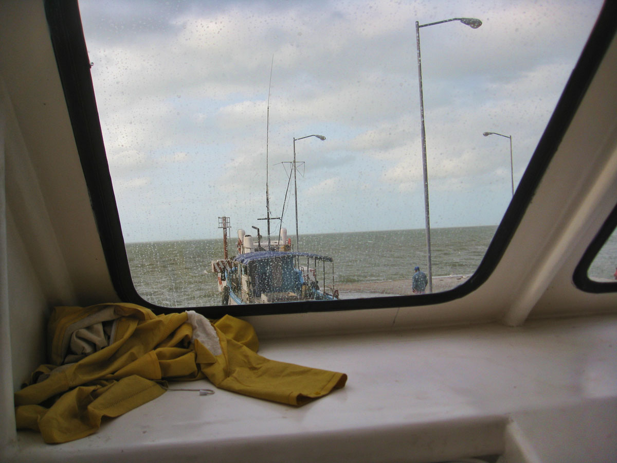 We launch, with the waves slapping under us.