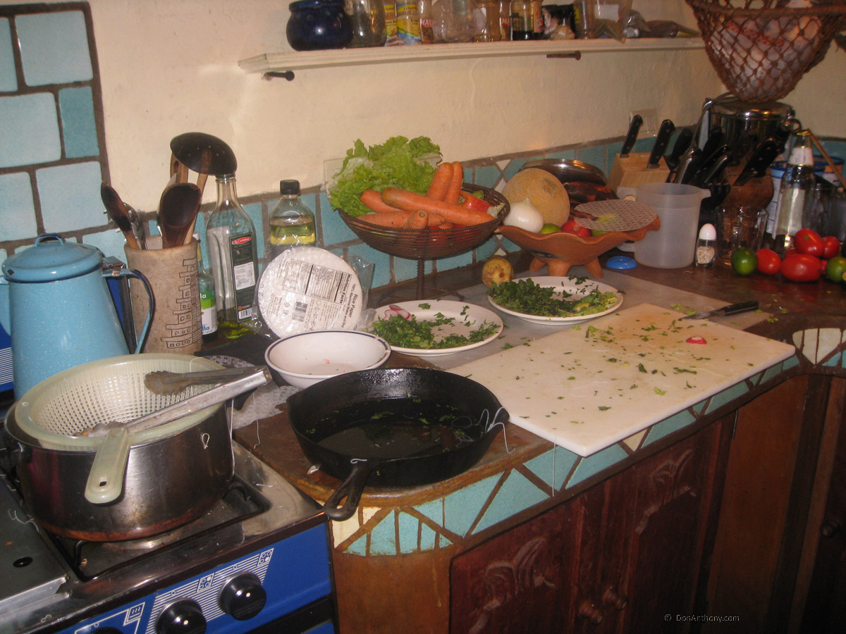 Tonight it's my turn to cook for the Dietz family. I start at 2:30 with a trip to the market for lettuce, shrimp, basil, avocados, mint, with a garnish of tomatoes and radishes.