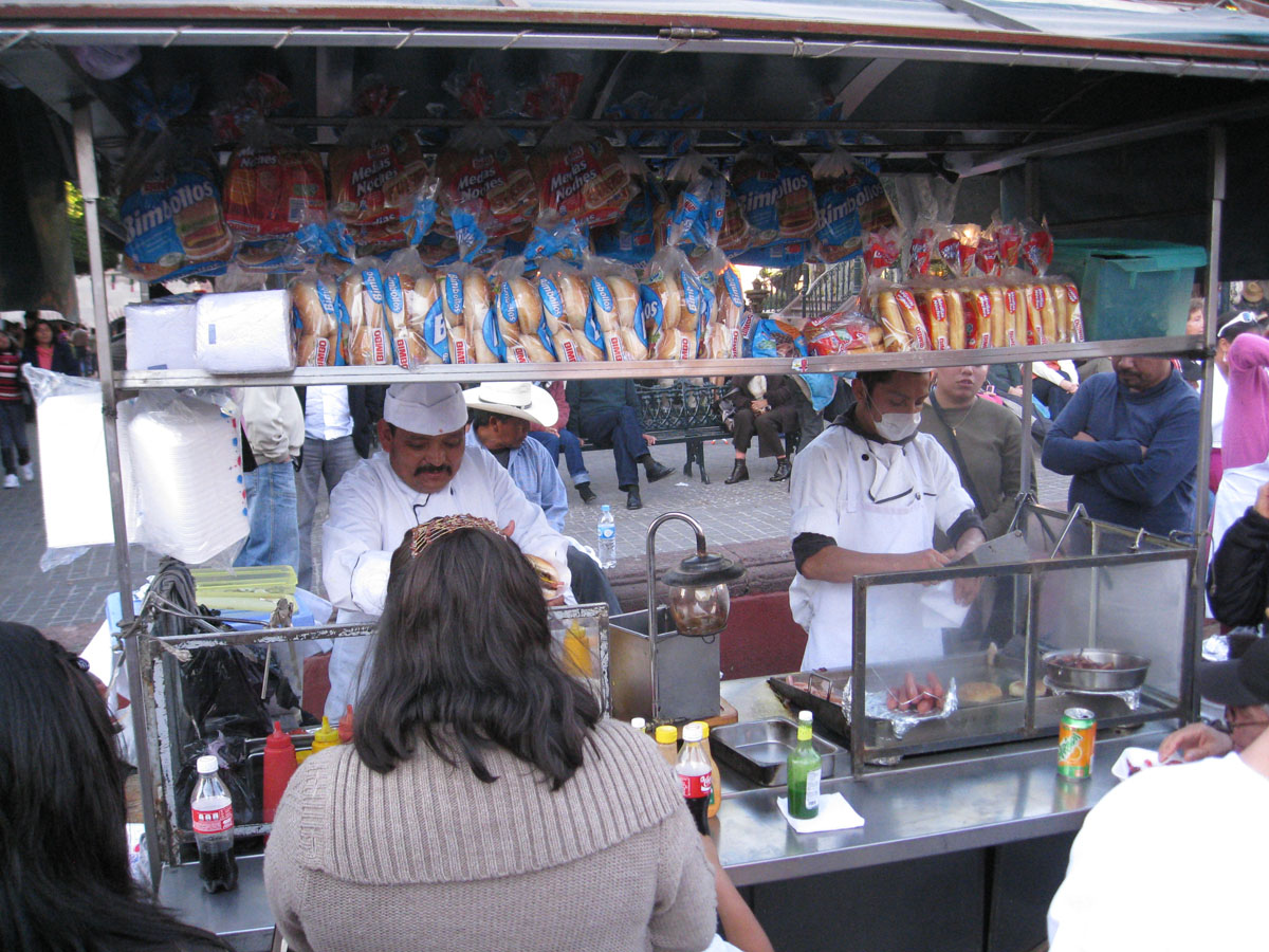 Past some taco stands on the square that look tempting.
