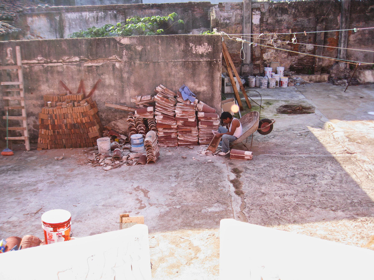 Over 50% of hotels seem to have someone nearby chipping some type of mortar product. No exception as the roof tile recycling "plant" chips from 7AM until dark.