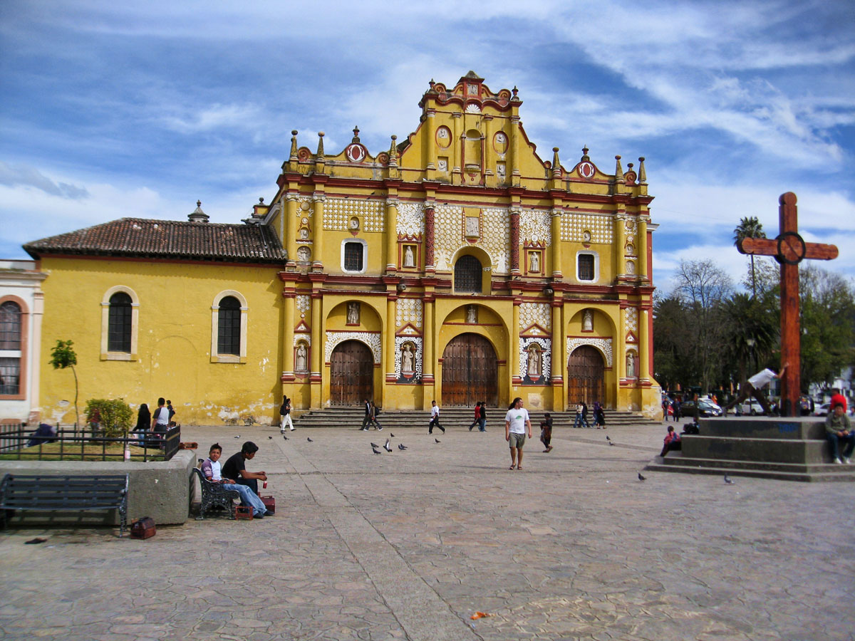 One of S.C.'s most beautiful churches and an arm off the main Zocalo where many people gather and rest on park benches. On clear sunny days, artists sit on the steps here and paint the mountainside behind me.