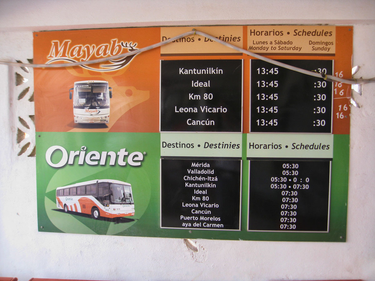 Travel options are sparse but I find an additional busline runs from Cancun, both MayaBus and Oriente. Both snail paced milk runs, 3.5 hour ride.
