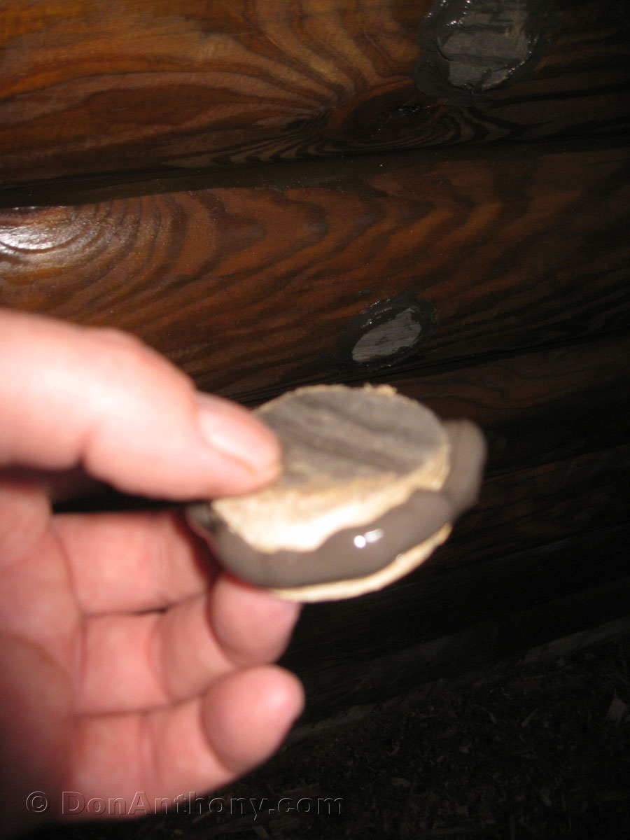 These should ideally set up for a week if possible. Then use the 30 grit wheel grinder to flatten their surface even with log. Careful with grinder!!!