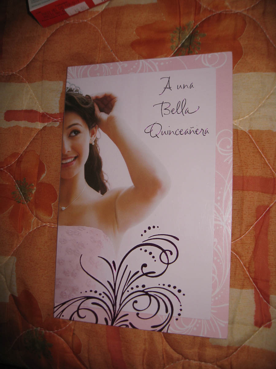The card I purchased for my friend Guan Guzman's daughter at her big celebration that will occur later in the evening, her Quienceanera.