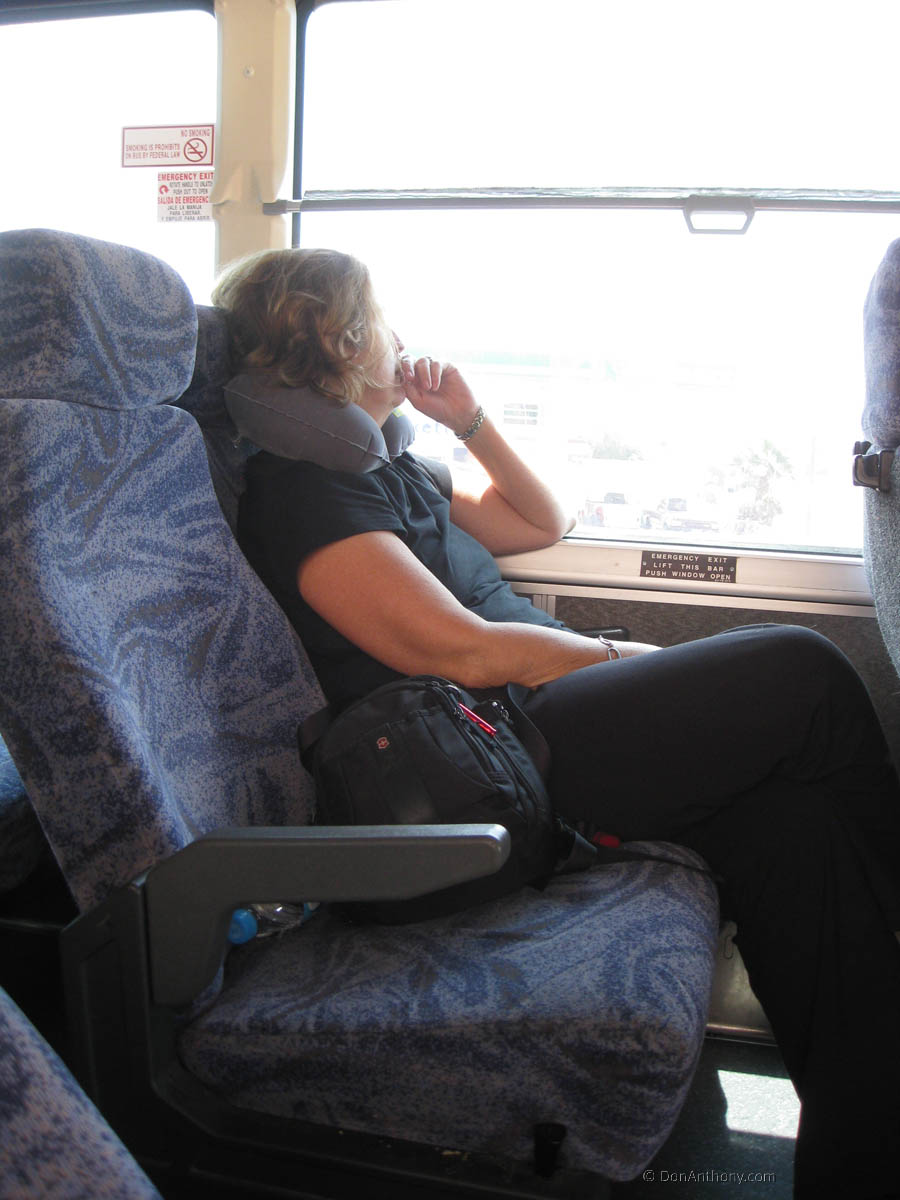 My seat partner complains of the leg room that I require and relocates to a better seat on the bus once the passengers start trickling off at the various small towns we make quick stops along the way.