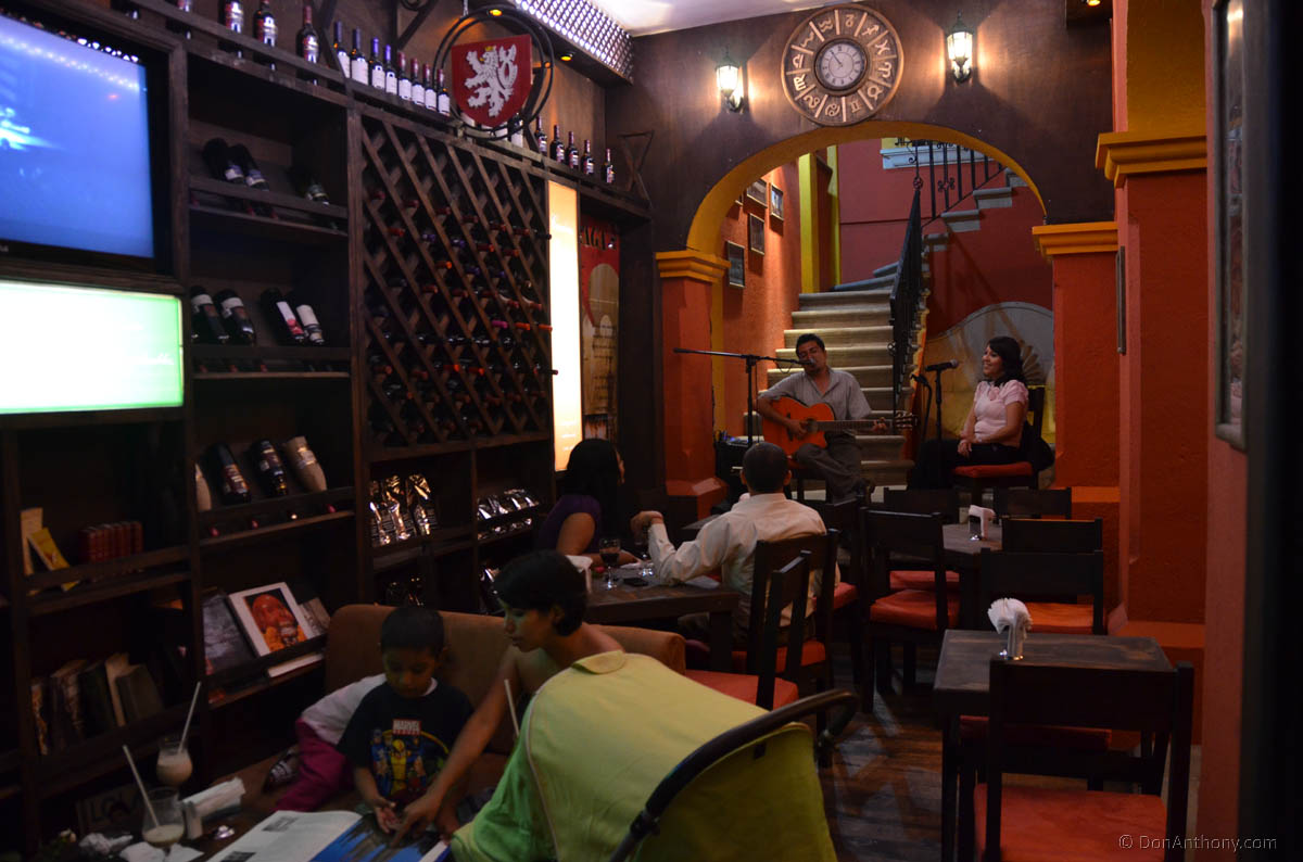 Strolling down the streets of Oaxaca, noting the colorful restaurants and bars.
