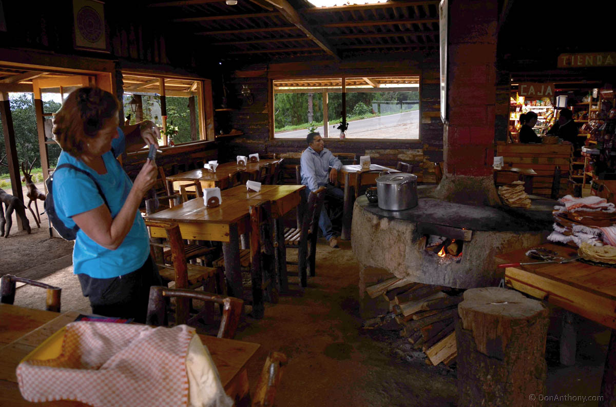 I wish I could spend a few months in this quaint restaurant here on the top of the Oaxaca mountains. We have to take what we get, however, and thus soak up all we can watching the prepare tacos on a oil drum lid and spin fresh Oaxaca chocolate mixed with warm goat's mile. It's a meal we will never forget.