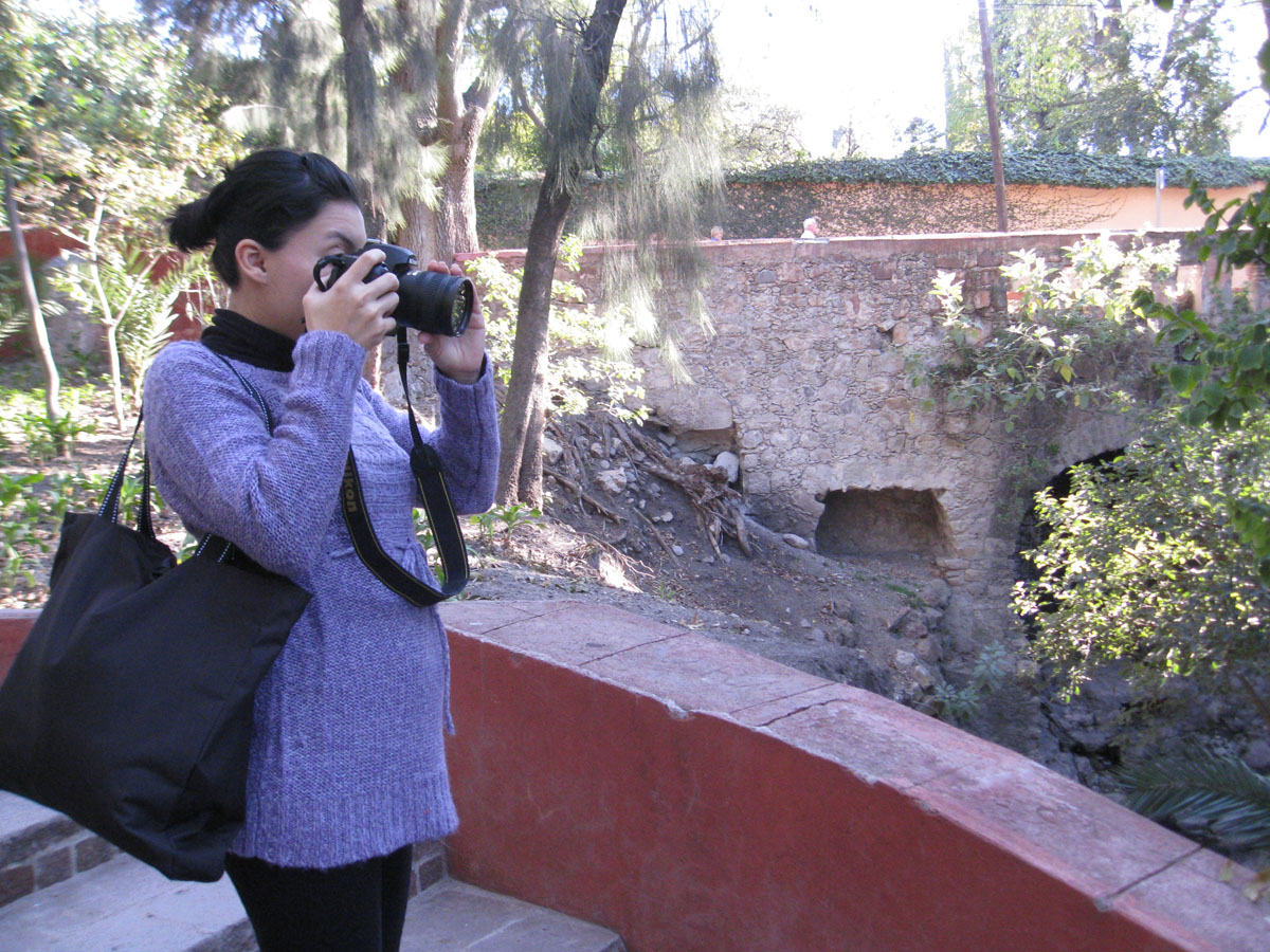 Arisbe on the stairs going up (and up!) to the art institute at the end of the park.
