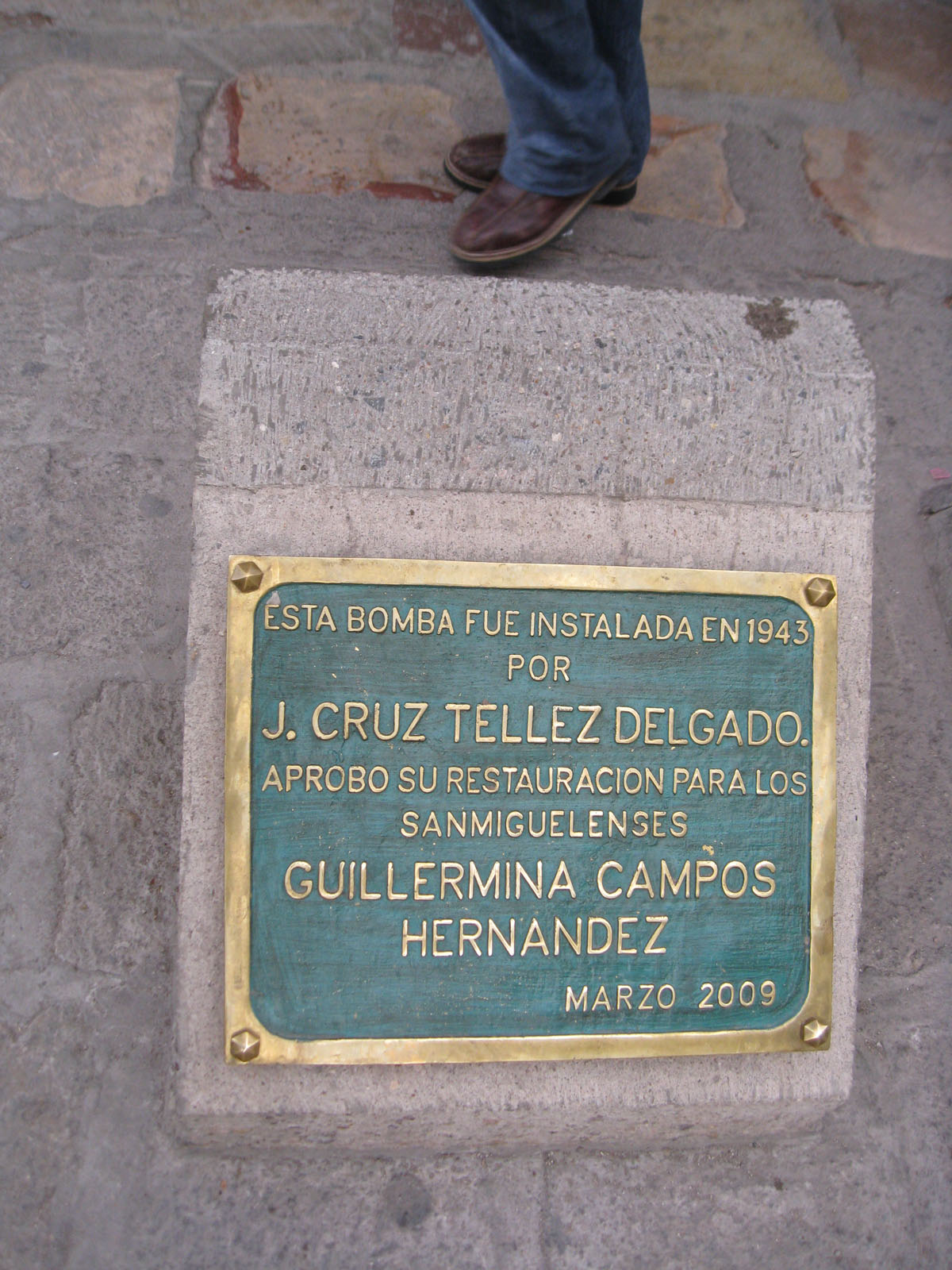 Historical marker marking the first filling station in San Miguel de Allende.