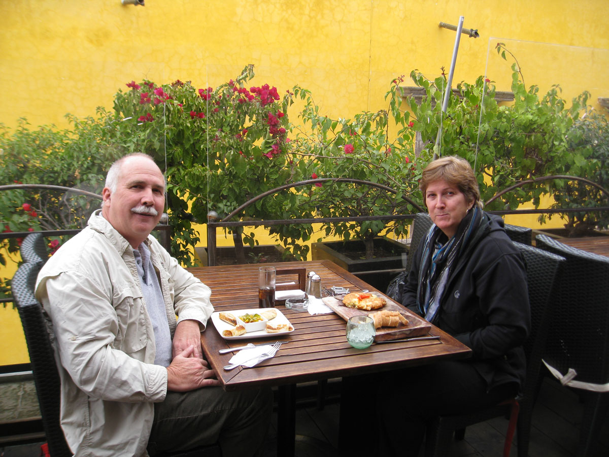 Neither of us are too happy; two exotic sounding dishes turn out to be Suzanne's scrambled eggs and onions in an odd shape and me with tuna mash in tortillas. All we can do to choke it down.