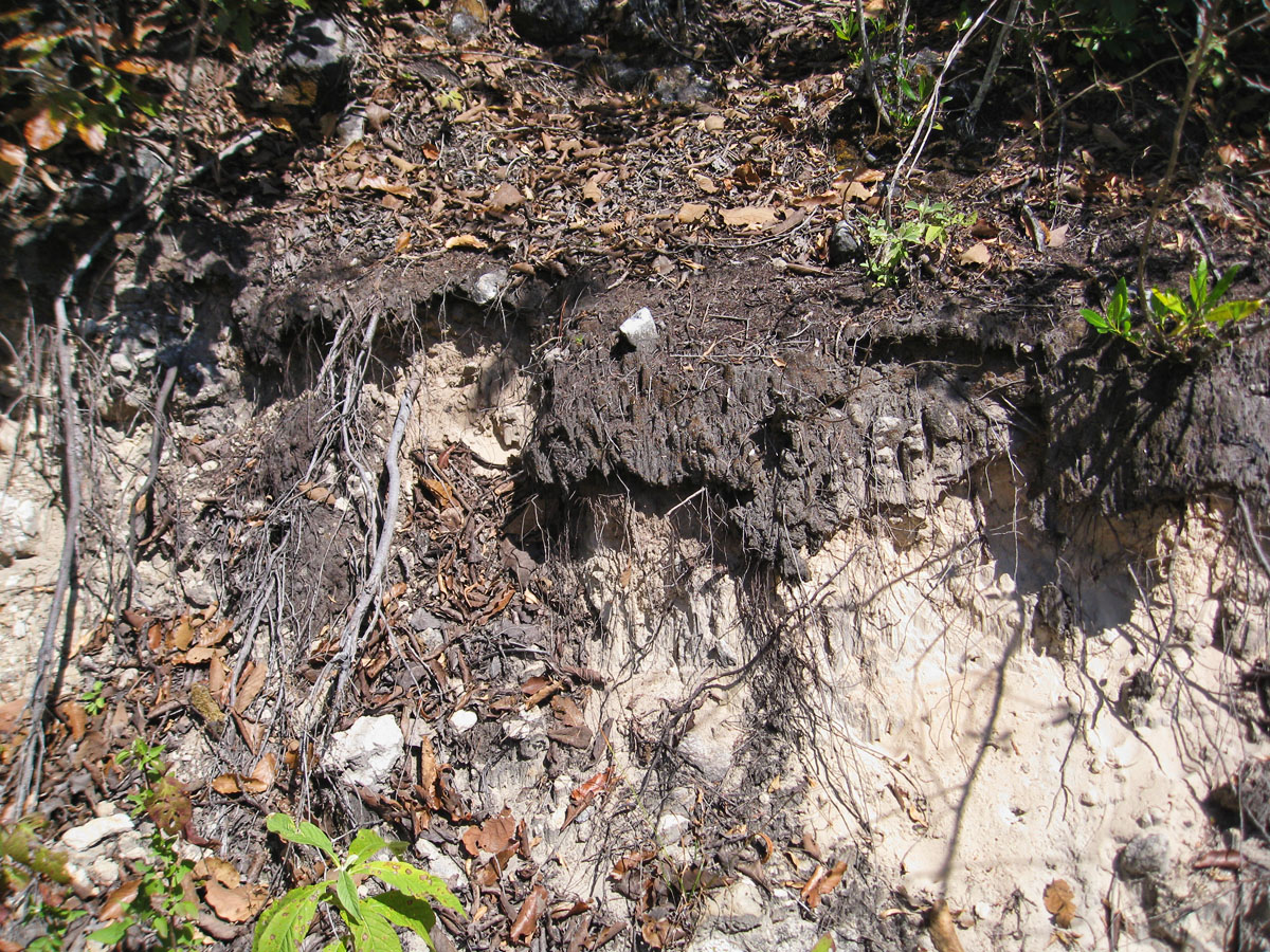 Topsoil is only a recent addition to the geology of the area. Once the area was only this powdery pre-concrete mix. It should be evident from this why the forest cover is so important to maintain.