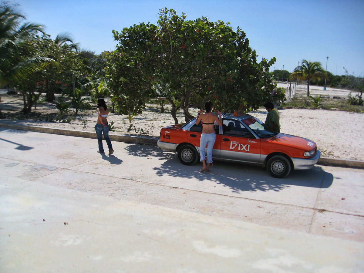 I stop by the Pronatura office at the end of the pier and find the young man manning the office is looking out the window. Oh, I see .... the chicas are going back to their resort hotel somewhere far, far away.