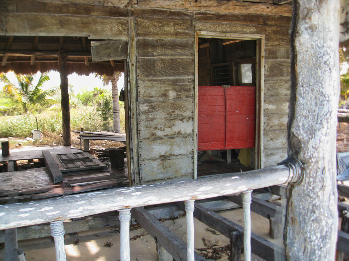 An abandoned beach shack or perhaps even a nice hotel room left in shambles from a previous storm.