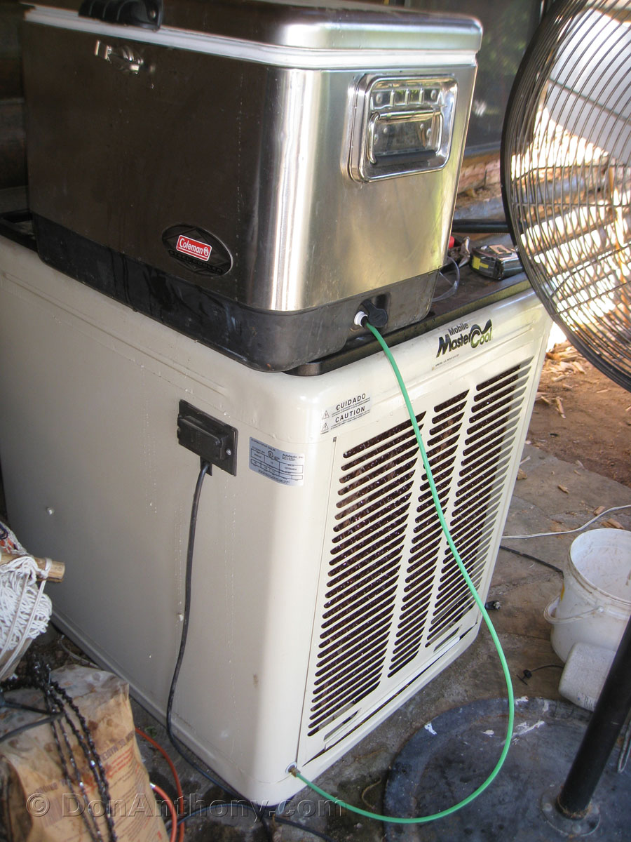 My water cooler for work in July & August. The portable water supply invention allows the unit not to require a water source.
