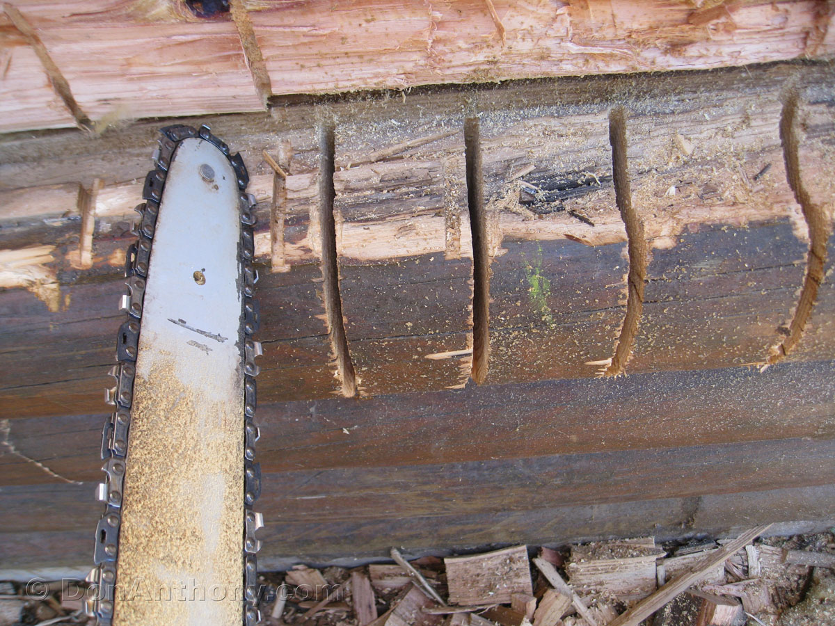 It's best to start at the top and go down because nails can be more easily marked. The chain bar is previously scored with a grinder at both 4 and 4 & 1/4" deep mark. No deeper please!