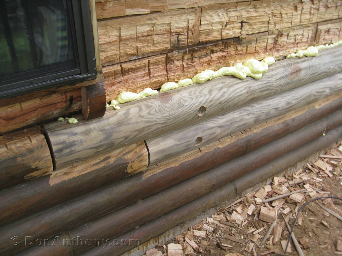 Foam behind the logs for extra insulation. Non expanding and not too heavy as it will come out the inside if not careful.