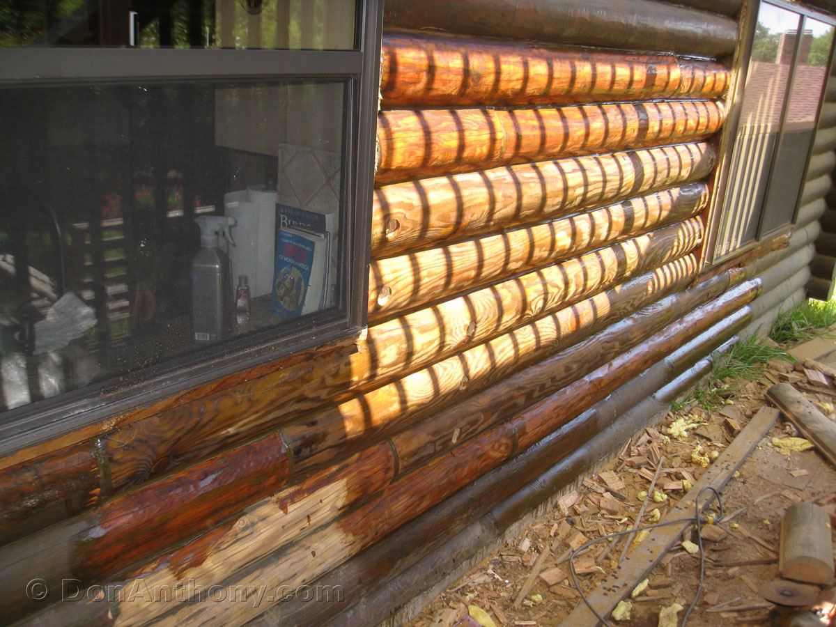 Rain is in the forecast this week and will hit before the dowels can be installed, so a single coat of Sickens is applied to protect the hours of sanding.