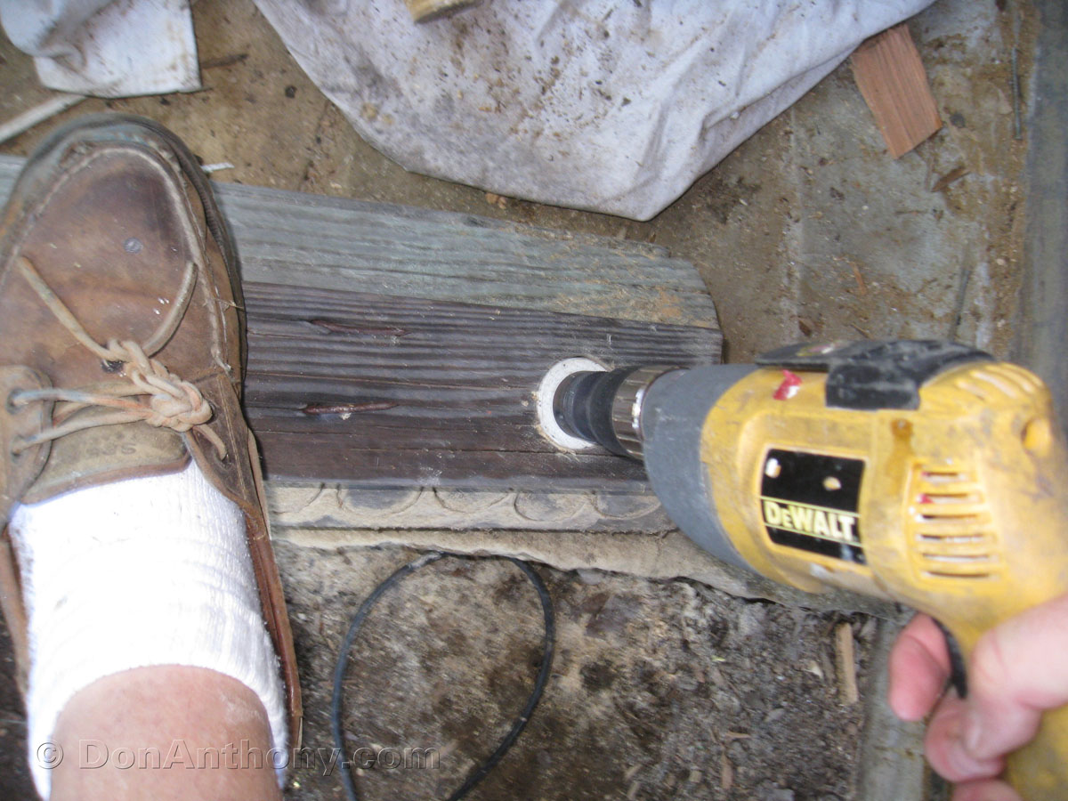 Dowels should be made, caulked in, allowed to dry 1 week, sanded level with the log before painting the log.