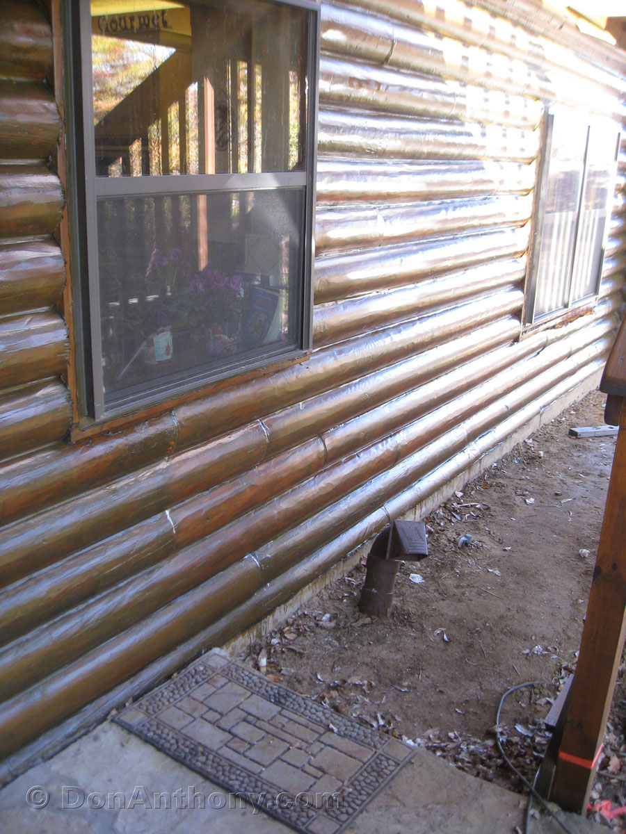 Vent pipe attached and run, dirt back-filled, concrete hole patched, stone work replaced and flower bed created.
