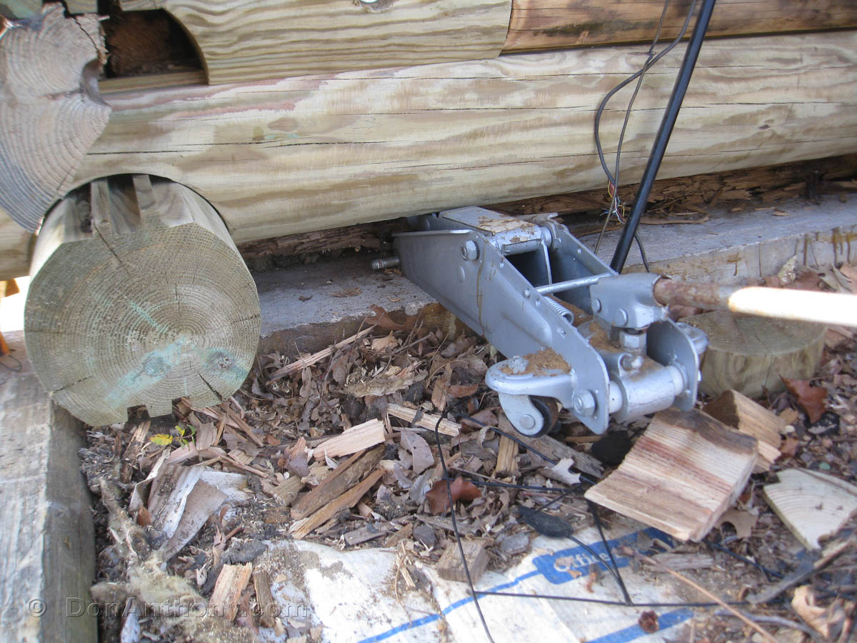 Too much weight on the stack here to slide in the last one, so we'll make it two pieces. Jack up, sick the piece in to the right of the jack, then pull jack out for final small section.