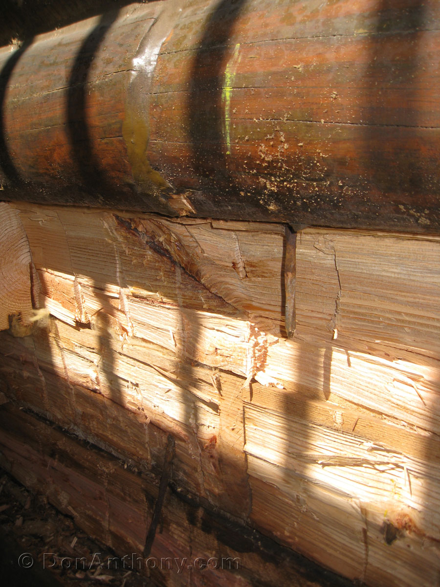 The 8" logs are cut 4 1/4" deep with the tip of a chain saw.