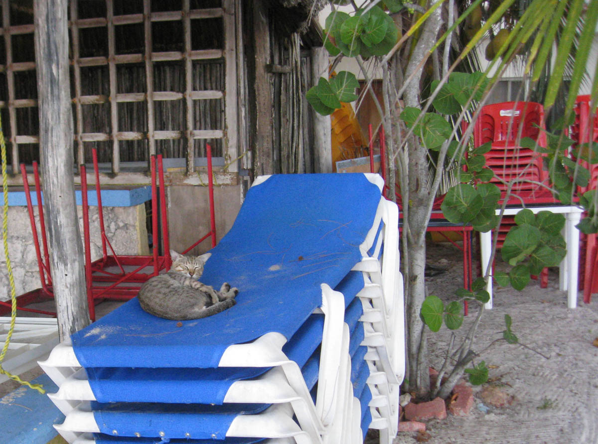 A cat has stolen my lounger during the night. Just like home!