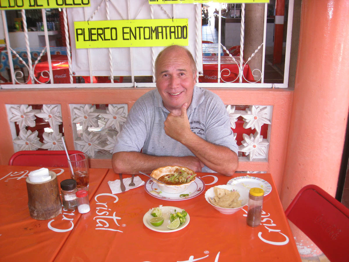 My new Mexico stomach opens me to gourmet meals at the city market, including my favorite Pazole and on prior days, Plato Ceviche.