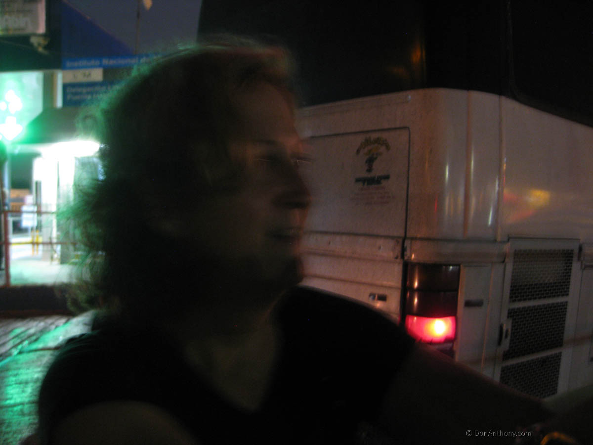 We wearily step outside the bus to grab some fresh air upwind of the smokers on board. Still this is better than airport security.