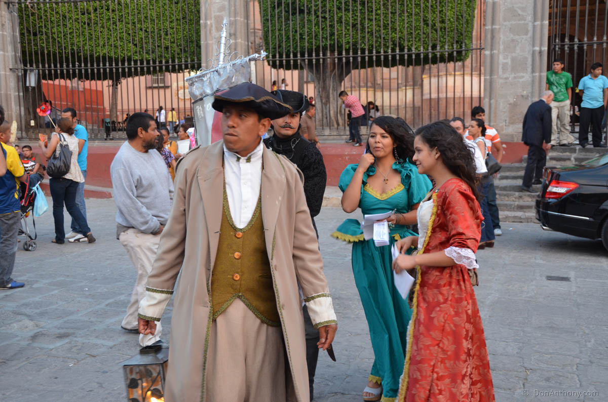 A new thing we are seeing this year in the colonial cities of Mexico, hired city greeters dressing in period attire.