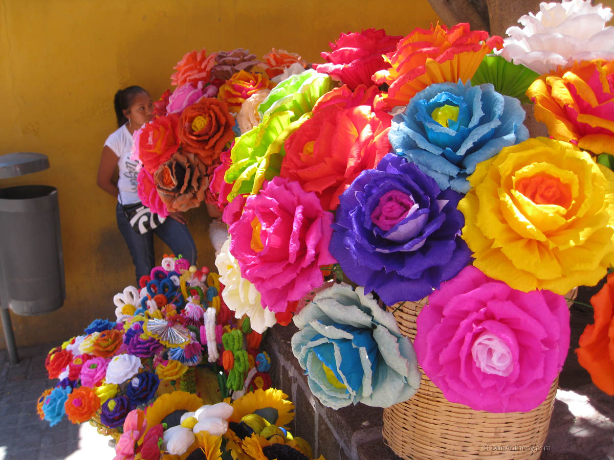 These paper flower vendors have a lot of competition with the massive amounts of real flower that are sold in this city each day.