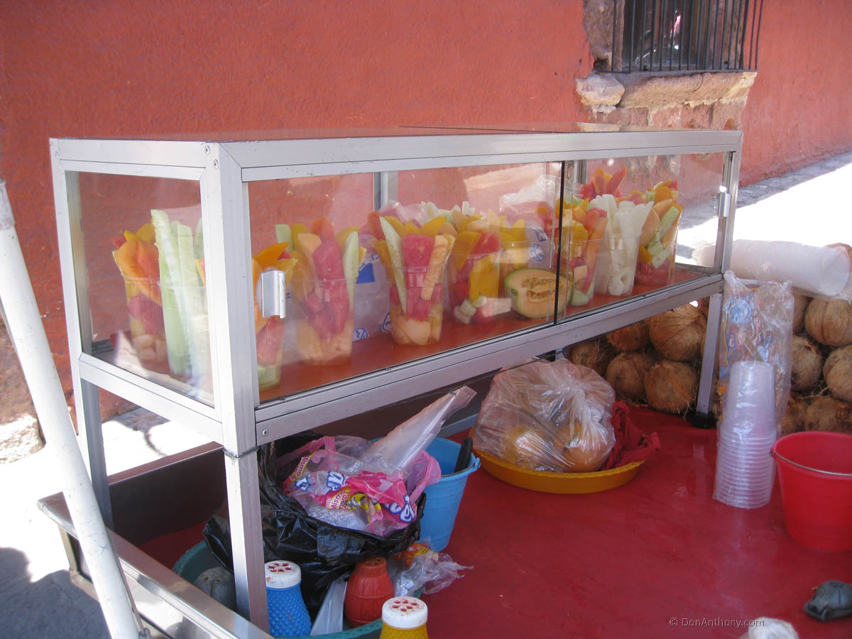 Fried plantains or fried potatoes, the fare is tempting and the choice is chili salt or none, either at about 75 cents a bag.