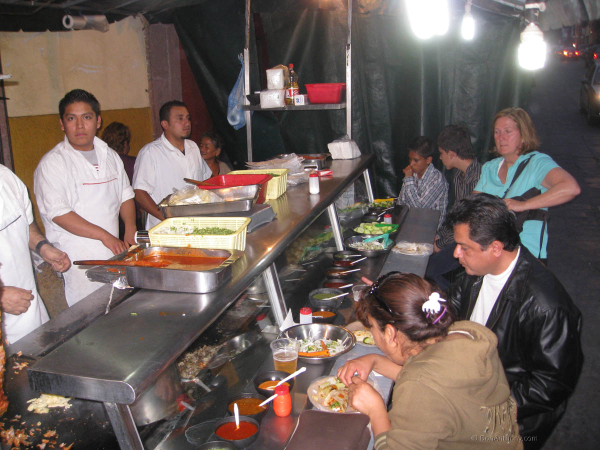 Suzanne has found this famous taco stand only open after 8PM on the corner of Insurjentes and Hidalgo.