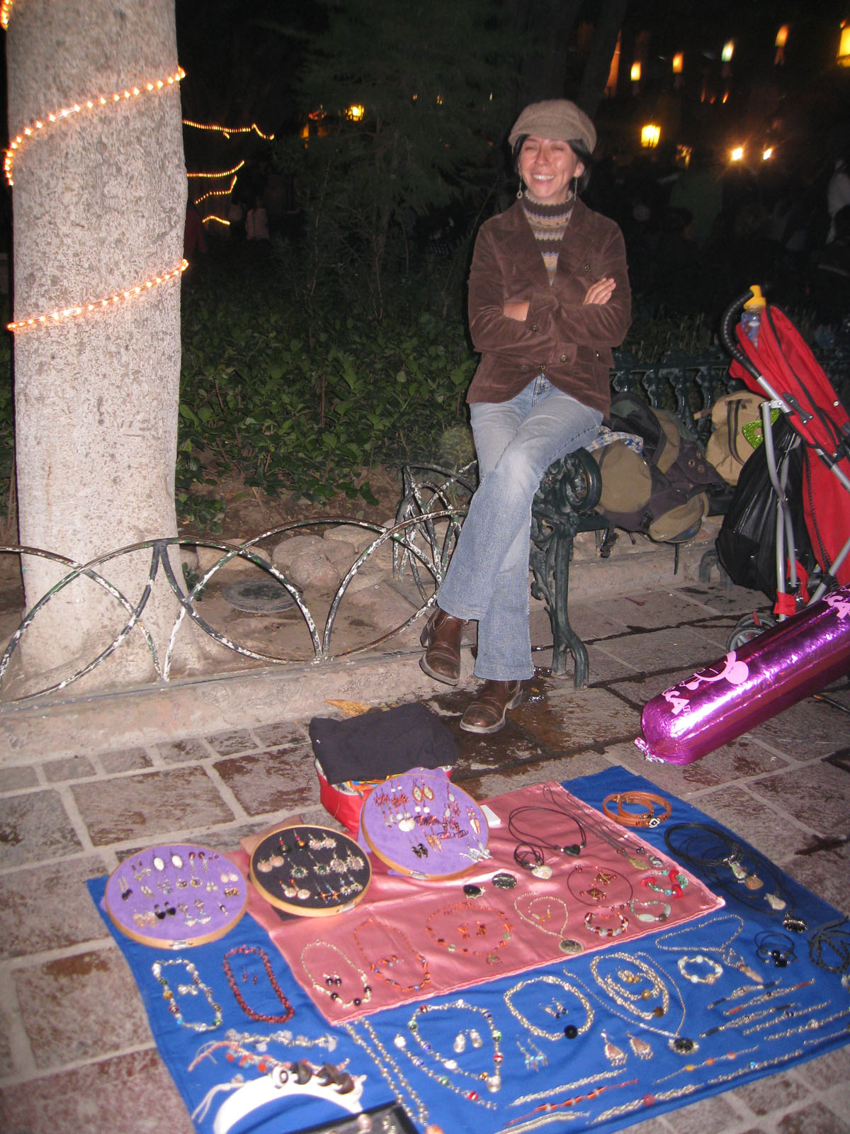 A few vendors display their wares in the central garden but as the crowd grows, they begin loosing merchandise as people start walking on it.