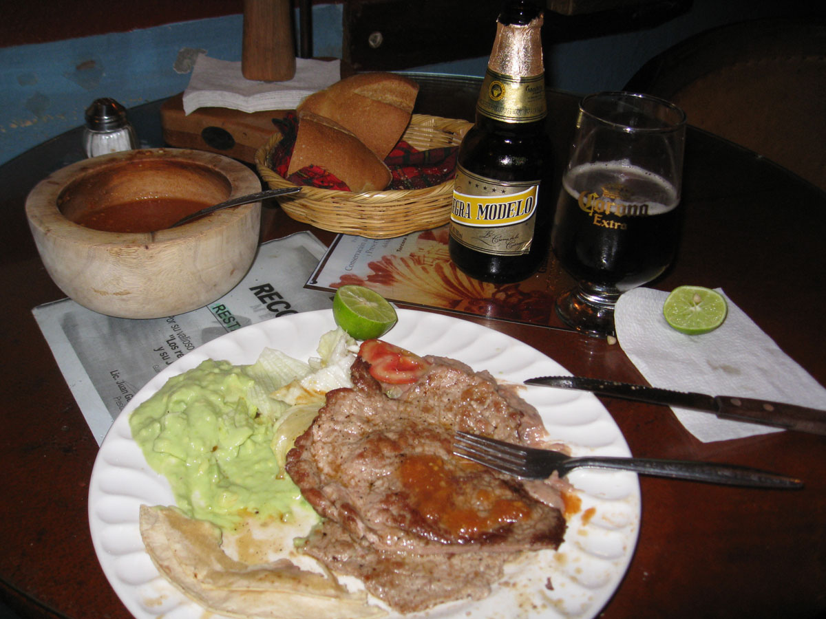 And as always, a sure route to pleasure in my mind, a $7.50 steak dinner plate and a buck and a half beer. Oh, did I say melt in your mouth good. Viva Carne Asada!