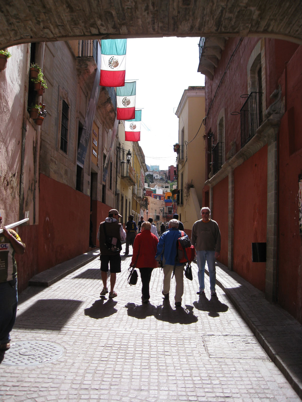 Now these are the heavy foot path thoroughfares, unlike most of the twisting narrow paths one must navigate when going off up the various paths. (It's Dennis on the right.)