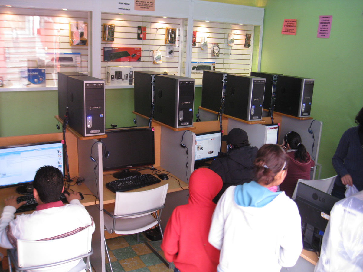Internet cafe with an interesting utilization of space. Don't sneeze!