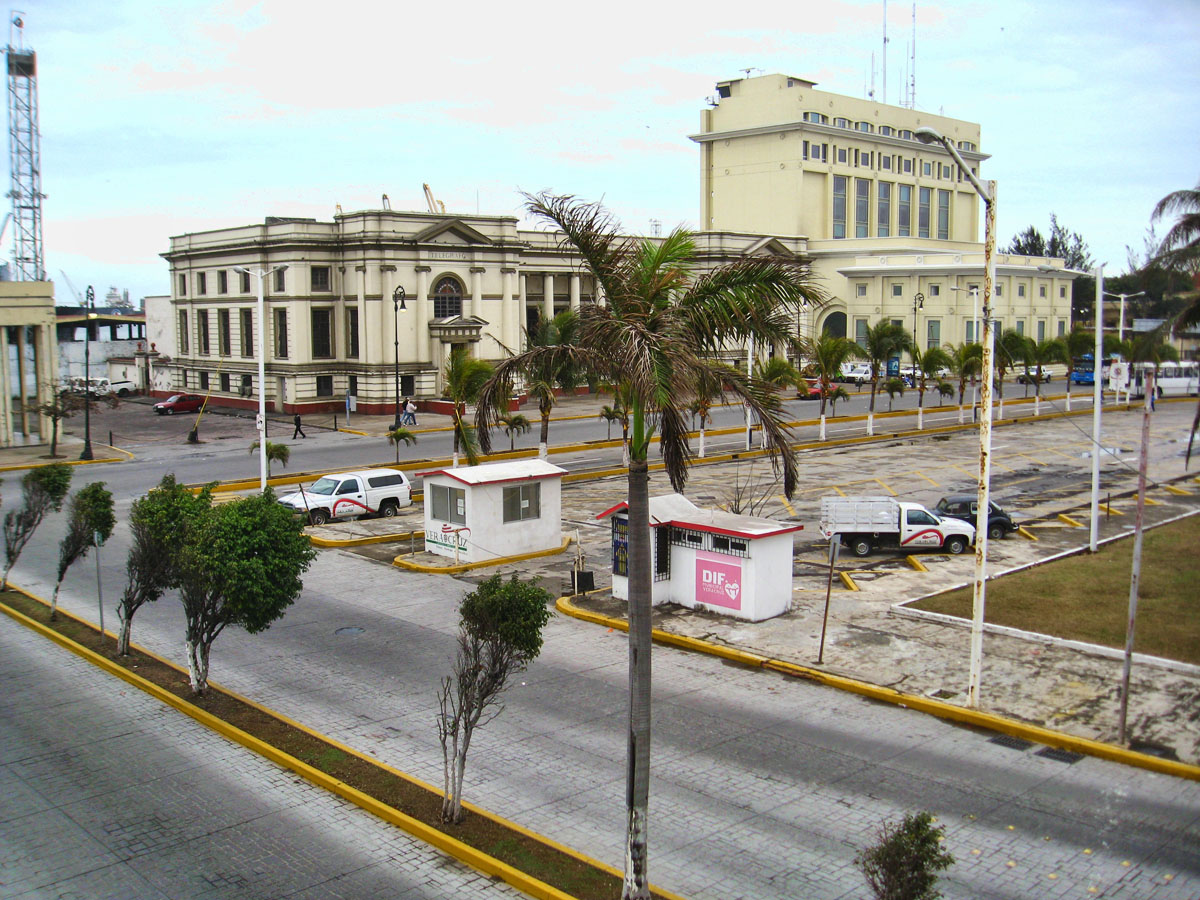 I start up the pedestrian walk along the bridge that crosses the shipyard.