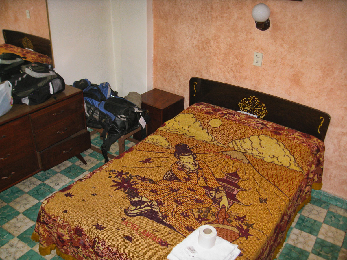 My $150 peso room (around 12 US) at the Amporo Hotel just 1 block off city center. Old but very very clean.