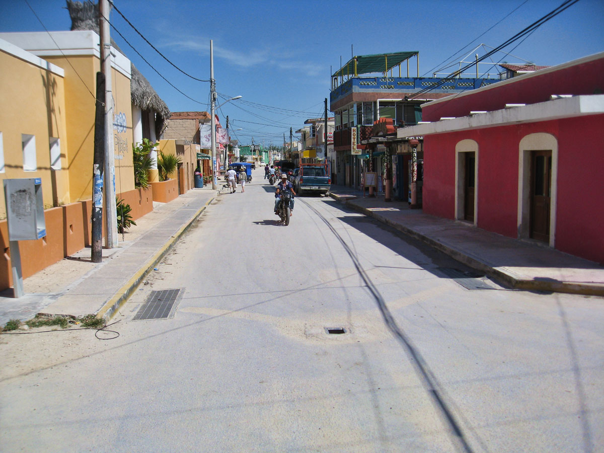 I pack in 15 minutes and walk 1 block to the new hotel. This is Celestun's main street.