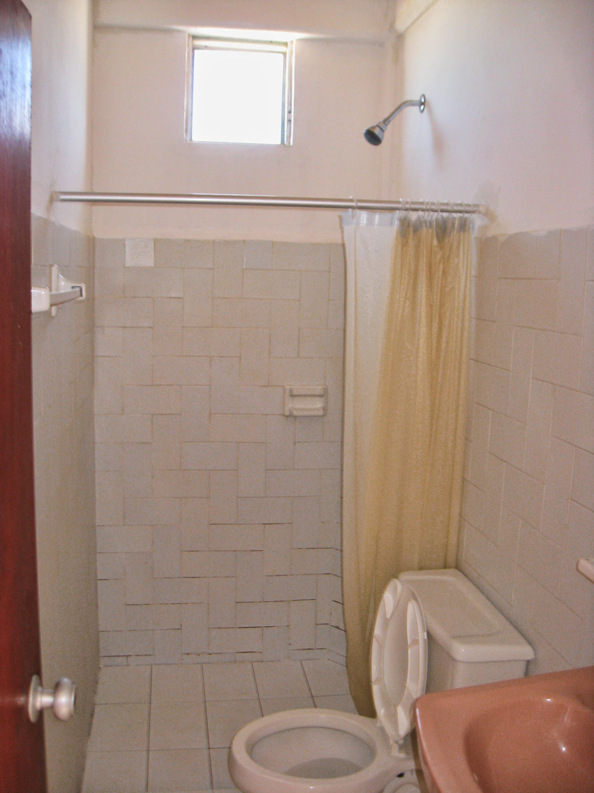 Shower of my room. Water pressure sporadic. They offer with/not A/C rooms for $20/$30 low season $35/$40 high season. Hotel Maria Del Carmen, (52) 988 9162170 ask for Suehay.
